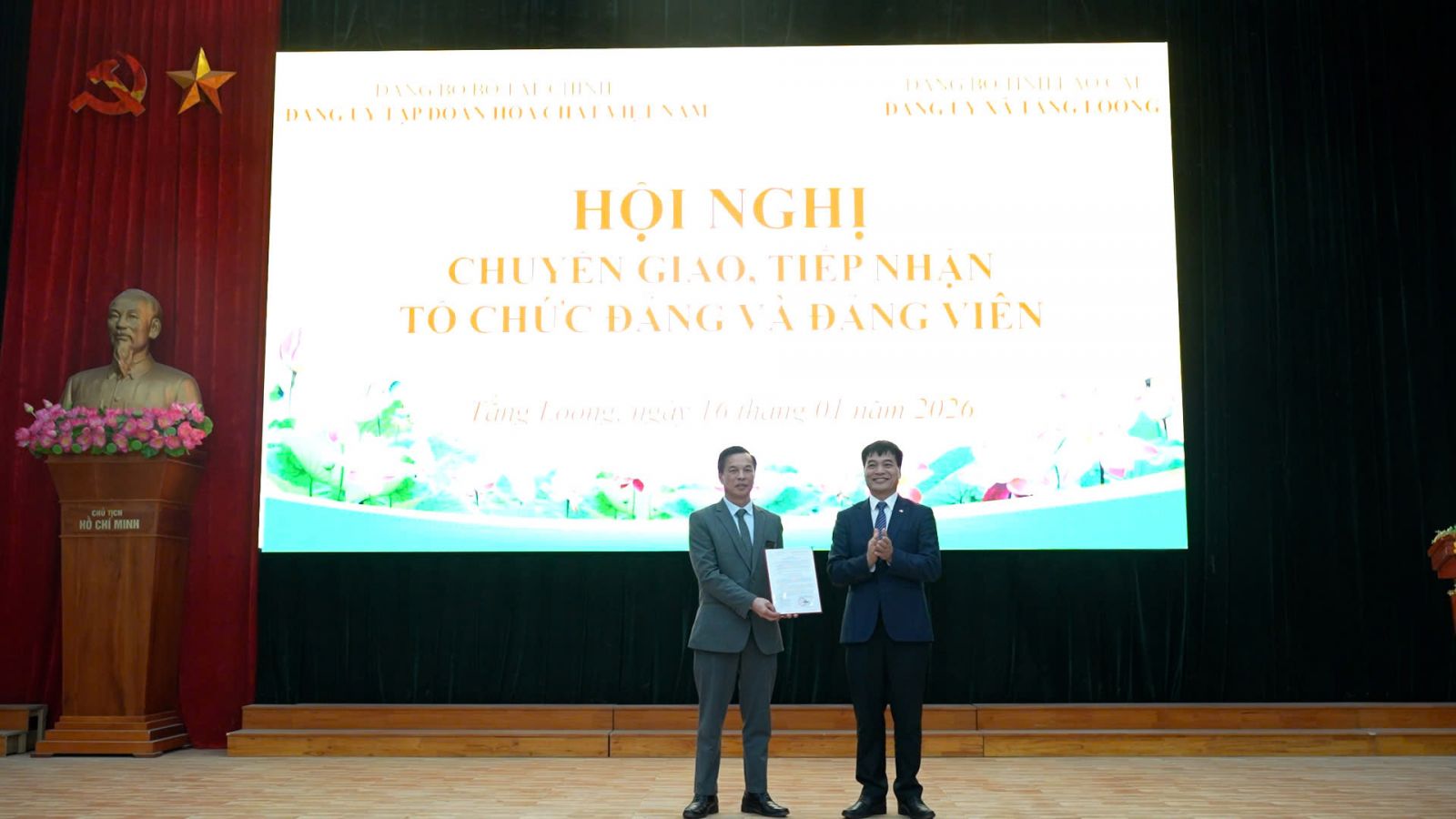 Chiều 16/1, Đảng ủy xã Tằng Loỏng phối hợp với Đảng ủy Tập đoàn Hóa chất Việt Nam tổ chức hội nghị chuyển giao, tiếp nhận Đảng bộ Công ty Cổ phần DAP 2 – Vinachem về trực thuộc Đảng ủy xã Tằng Loỏng.